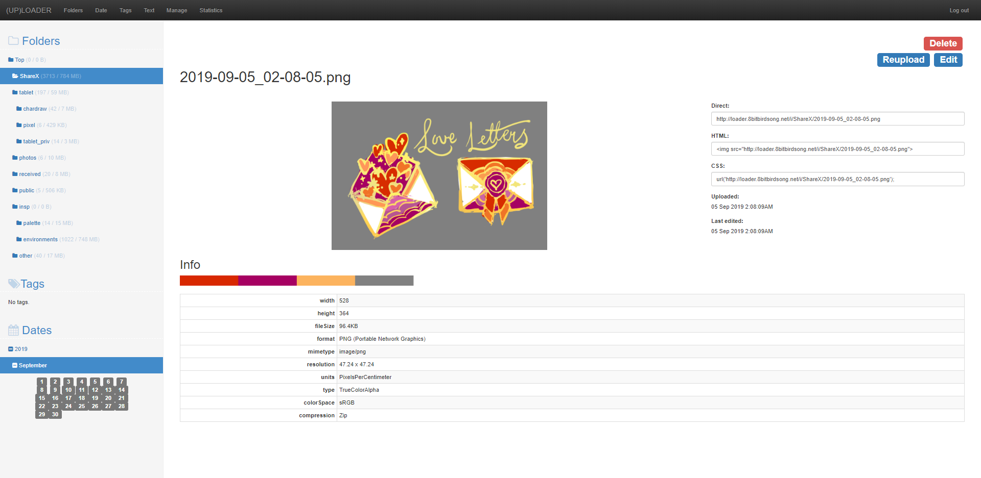 One of my first projects in PHP, this was created as a replacement for a popular free image host that had recently made several layout changes that slowed down my browsing experience. I decided it was time to move hosts, but no free host was satisfactory, so I decided to build my own hosting website.
